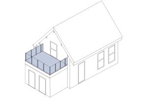 - Dachform: Satteldach mit einer Neigung von 5°.
