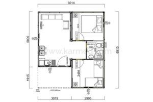 Karmod 42 m² Container-Fertighaus kaufen: Schlüsselfertige Wohnlösung mit 2 Schlafzimmern und Bad