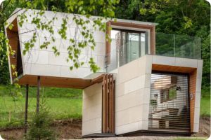 - Architekturstil: Modernes Container-Design mit klaren Linien