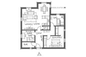 - Gebäudeform: Kompakt und funktional als Bungalow