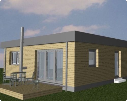 Kompaktes Mini-Fertighaus in nachhaltiger Holzbauweise