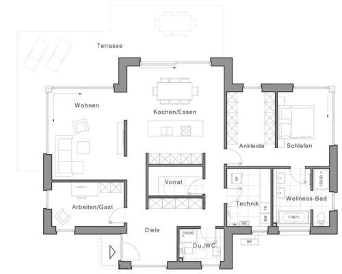 - Extras: Ankleide, Vorratsraum, Technikraum